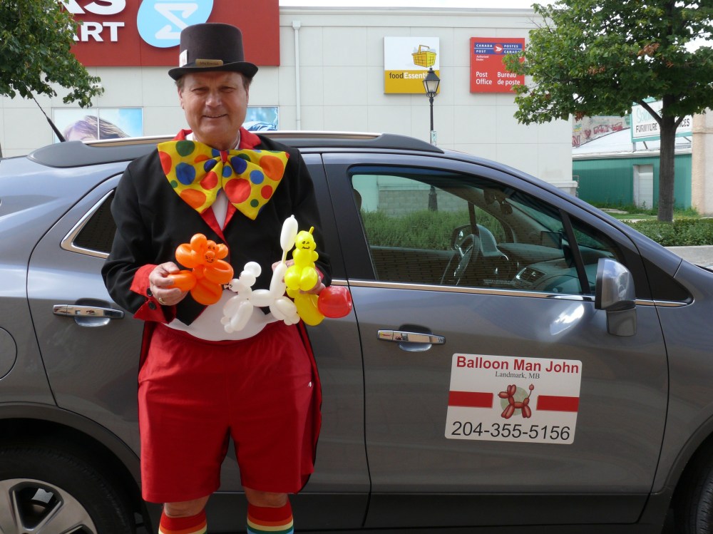 “When I was with the Lions Club in Saskatchewan, they had to hire a balloon twister from Saskatoon and he wanted $575 for two hours. So, me being kind of silly, I said ‘I can do it for $150 for half a day!’ and that’s what I did,” said Kowaluk. “So I guess that’s our basic rate—it’s what I set five years ago. Of course there’s a few [changes to the pricing] now, but we’re still maybe—from what I can find out—a third of the cost from [people in] Winnipeg. And we’re right there.”