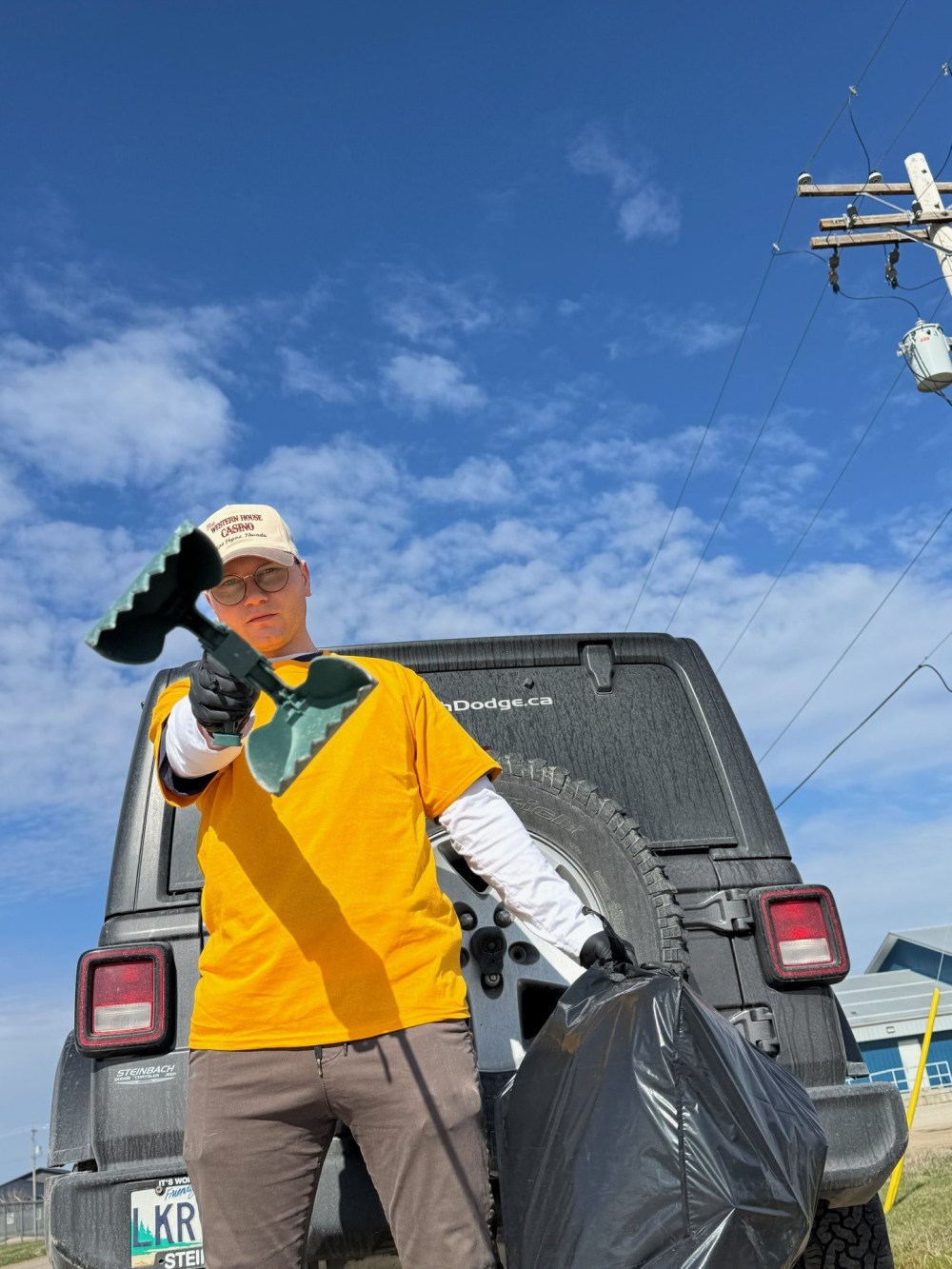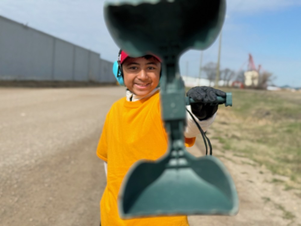 Draegan Sicat shows off the tools of the trade as he prepares to take part in the annual Pick Up and Walk event hosted by Steinbach churches.