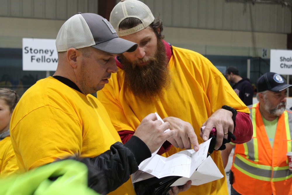 GREG VANDERMEULEN THE CARILLON Volunteers go over their map before heading out.