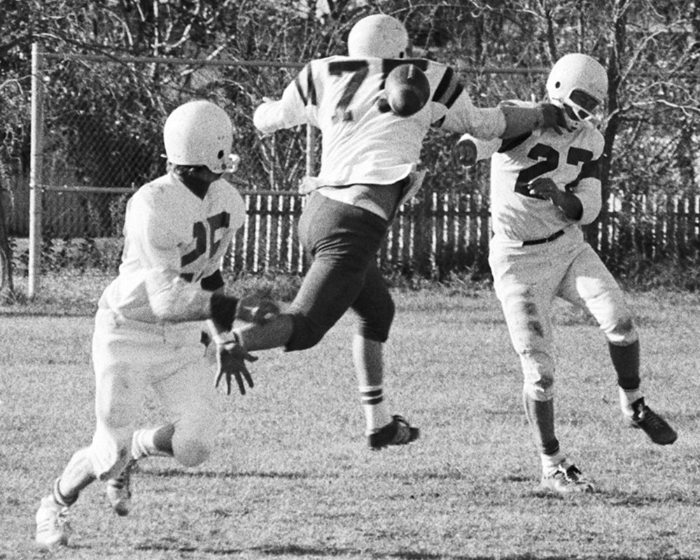 Bruce Reimer didn’t return to the huddle, but remained on the field near the sidelines and on the next play Wilmer Penner hit him on a 50-yard pass and run play, narrowing the gap to four points.