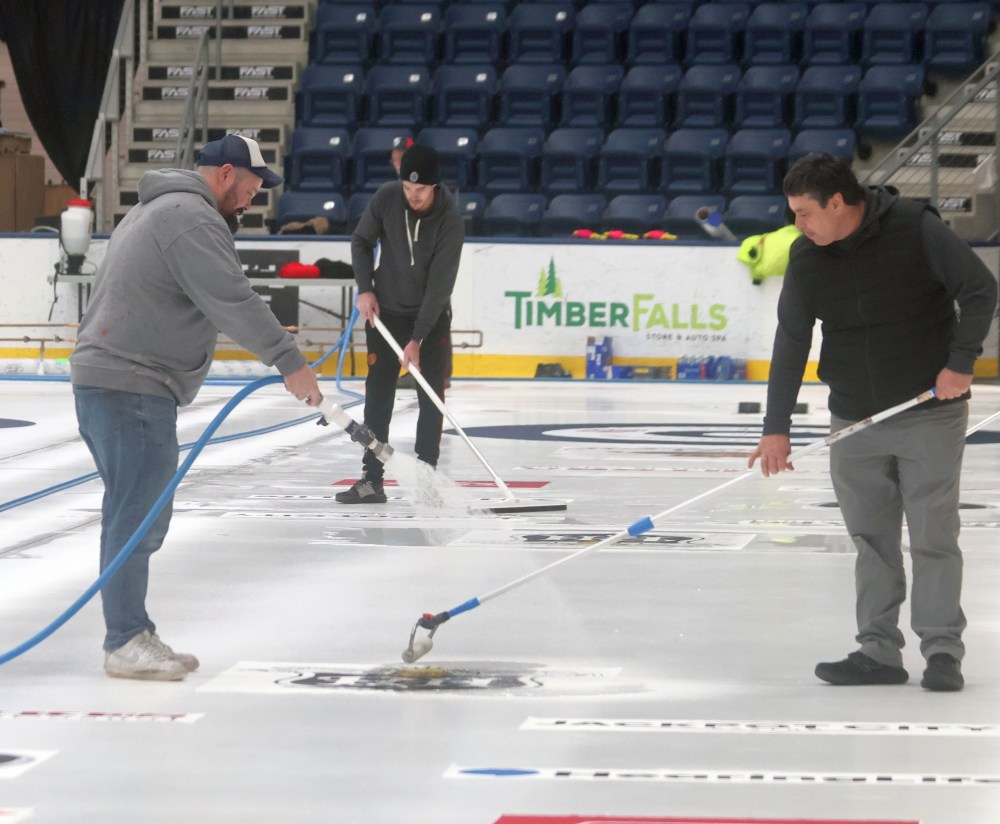 The action on the sheets began Jan. 6, but crews were hard at work as early as Jan. 2, preparing the ice inside the arena’s main bowl for curling. Crews put down a layer of paint, add advertising logos and lines before finally laying down some pebble for rocks to curl on.